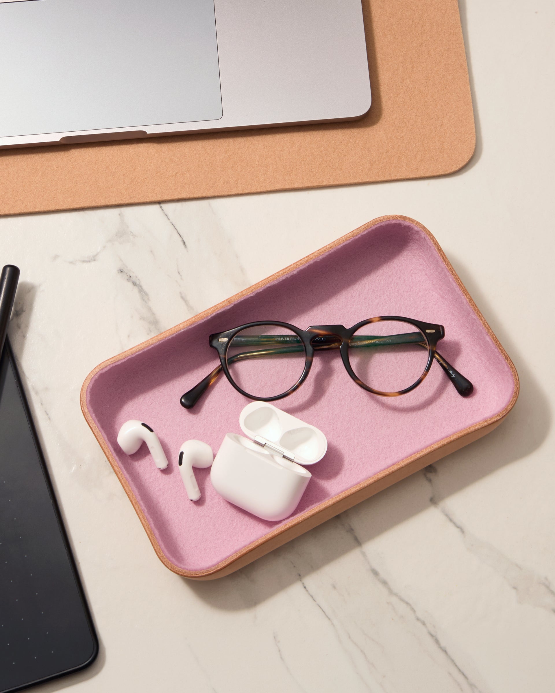A study in contrast. Sculpted leather meets soft Merino wool to create trays that bring warmth, structure, and intention to the everyday. Designed to hold the small things that move through your day.
